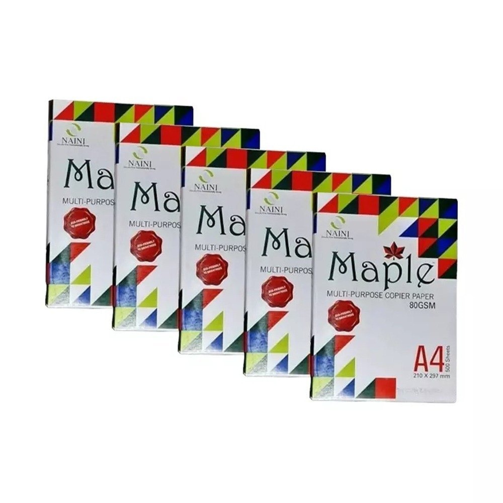 Maple 80 GSM A4 Paper is designed to offer high-quality printing for both office and personal use. This pack includes 5 reams, ensuring you have a plentiful supply for all your printing needs. With its smooth finish and 80 GSM thickness, it delivers professional-grade prints suitable for reports, presentations, and everyday tasks.
